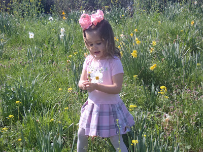 On a beautiful Sunday Abby and I stopped to take some pictures of the flowers and her picking them .....